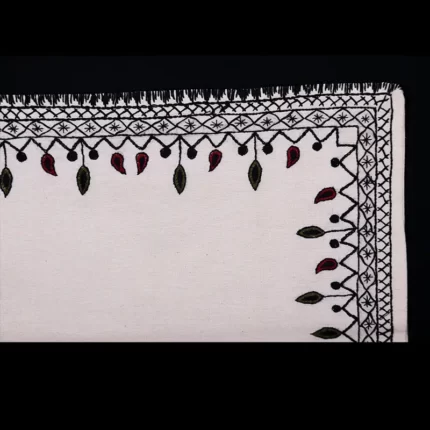 این دوخت روی پارچه پشمی به نام عریض و ریس (نخ های پشمی الوان) در رنگ های عنابی ، مشکی ، سبز روشن ، سبز تیره ، زرد ، نارنجی ، قرمز ، آبی تیره ، سبز ماشی ، لاکی ، فیروزه ای و..... دوخته میشود .